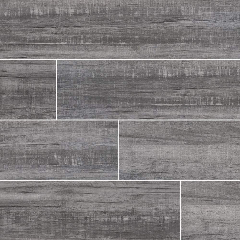 From our Belmond Collection of Ceramic Tile, the Mercury tile features gorgeous charcoal and gray tones in a pattern reminiscent of aged hardwood. These beautiful on-trend tiles are offered in matte-finished 8x40 planks that allow for creative installation patterns. Use these tiles for countertops, floors, walls, backsplashes, showers, and other features throughout your property.